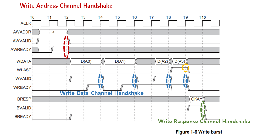 Write Burst도 Read Burst에서 설명한 내용들과 크게 다를건 없어보이네요.