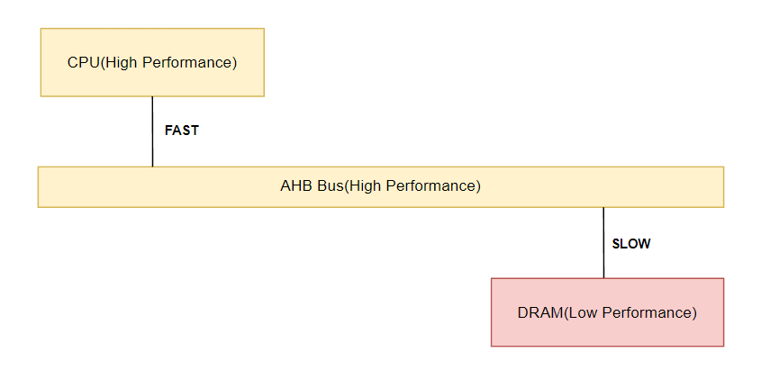여기서 빠른 CPU와 느린 DRAM을 모두 Performance가 좋은 AHB에 연결했다고 가정합시다.