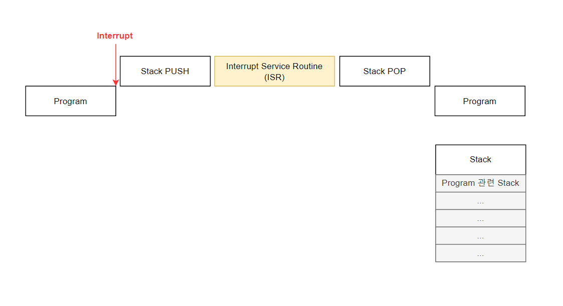Interrupt Service Routine으로 들어가기 전에 기존에 하던 작업들의 정보를 Stack에 저장하는 등의 과정을 거칩니다.
