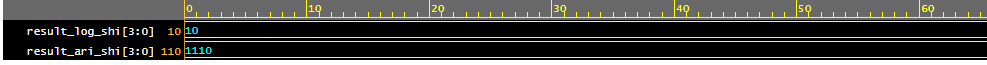 공부한 대로 Logical Shift 연산시에는 0010, Arithmetic Shift 연산시에는 1110으로 나타나는 것을 확인할 수 있습니다.