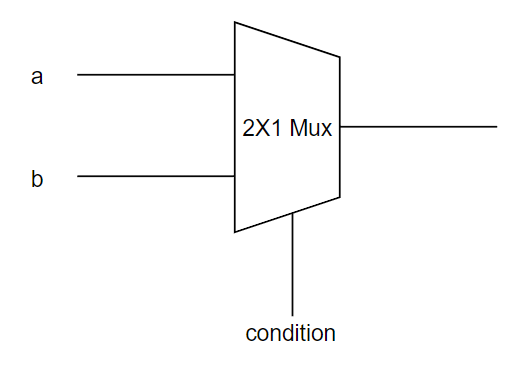 즉, 조건1을 검사해서 출력을 a, b 중에서 선택을 하는 코드라고 할 수 있는데 이는 회로적으로 봤을 때 2X1 Mux가 됩니다.