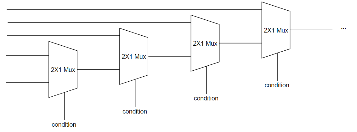 위에서 봤던 2X1 Mux가 줄줄이로 생겨서 회로의 Size가 매우 커지고 Hardware적으로 좋다고 할 수 없겠죠.